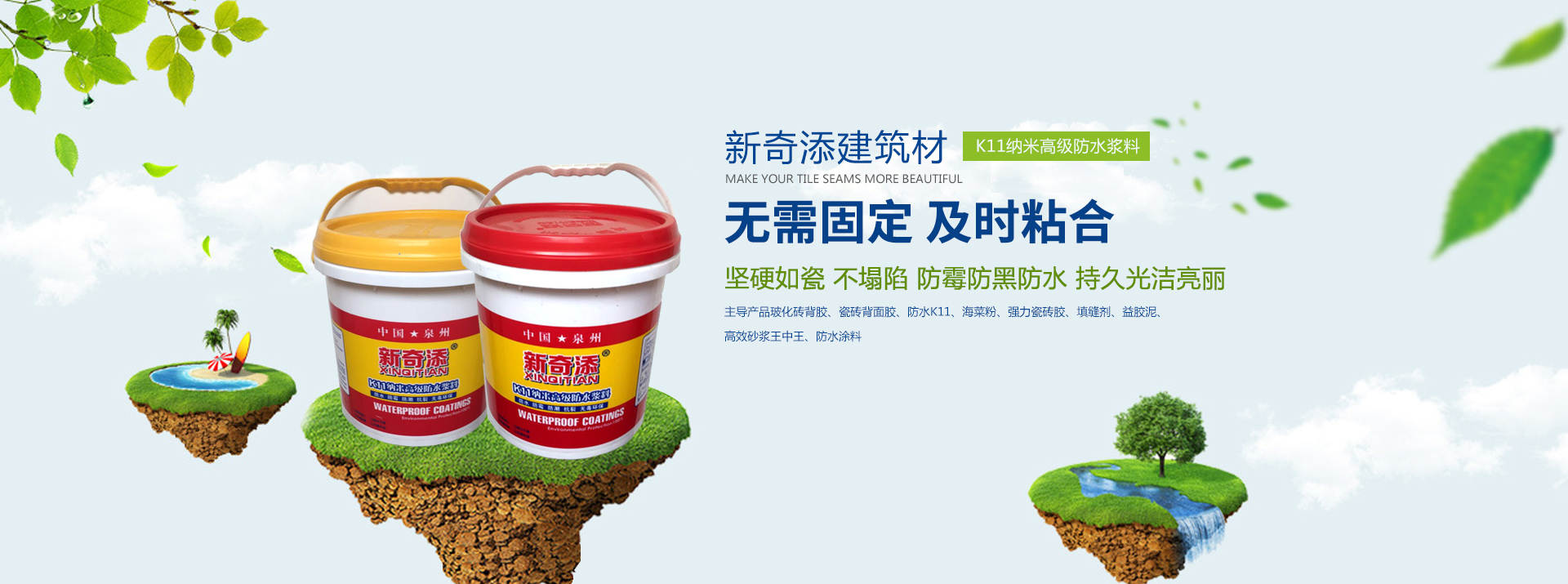 泉州市新奇添建筑材料有限公司成立于2010年,注冊資金500萬元,是一家專業(yè)從事高端防水材料、新型墻體材料、建筑材料設(shè)備的研發(fā)、生產(chǎn)和銷售的新興高科技企業(yè)。公司人員組成,以高、中級專業(yè)人才為主體。其高科技含量達國內(nèi)外同行業(yè)先進水平,在所涉領(lǐng)域具備強大的科技優(yōu)勢與核心競爭力。公司憑借強大的研發(fā)能力和成熟的高科技產(chǎn)品,在綠色環(huán)保建材領(lǐng)域異軍突起。